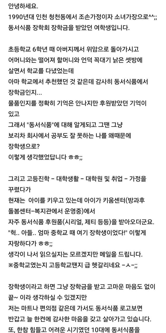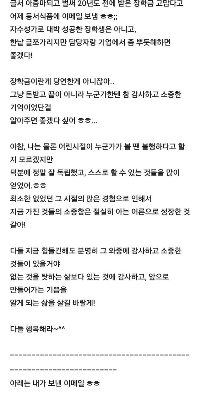 20년 전 동서식품 장학생으로 뽑혔던 학생 후기